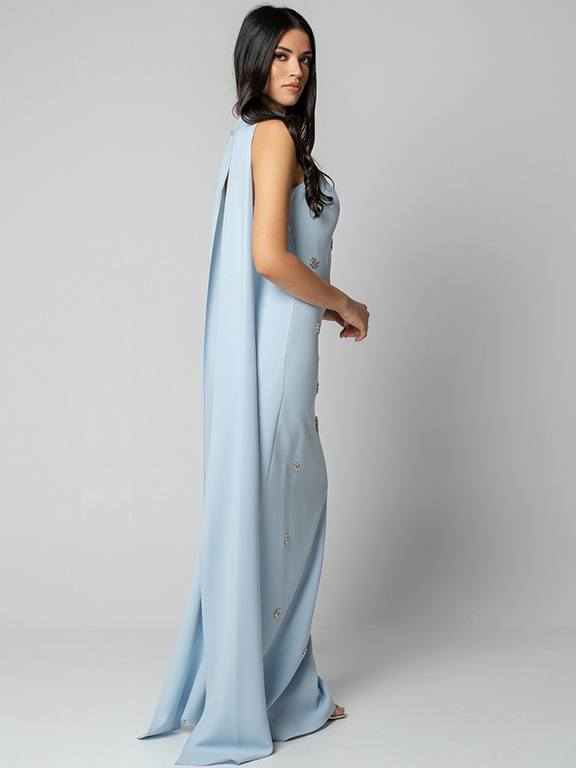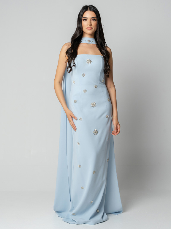 Βραδινό φόρεμα maxi με κεντημένα αστεράκια.